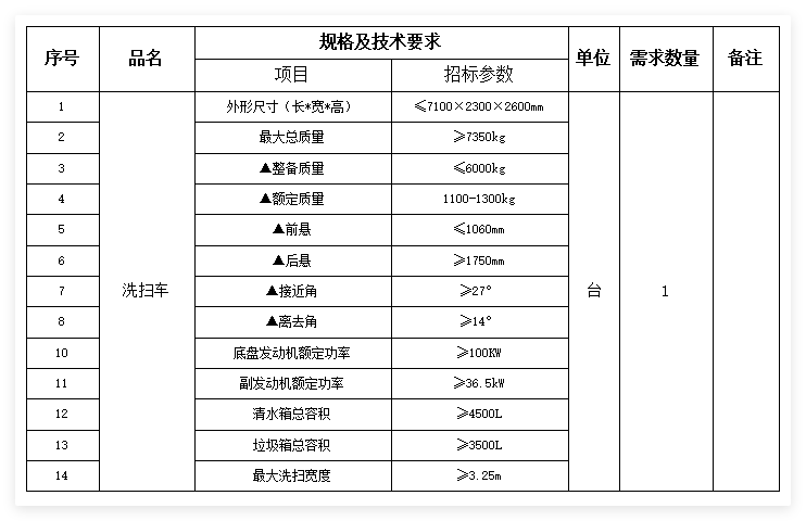 2.1 項目名稱:黃石市城發(fā)綠色建材有限公司洗掃車采購招標(biāo)